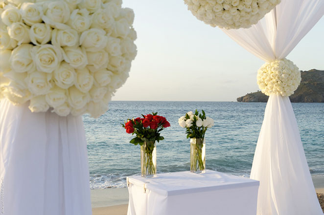 Ceremony on the beach facing the turquoise water, cocktail savoring around the pool, dinner celebration in a magical décor.