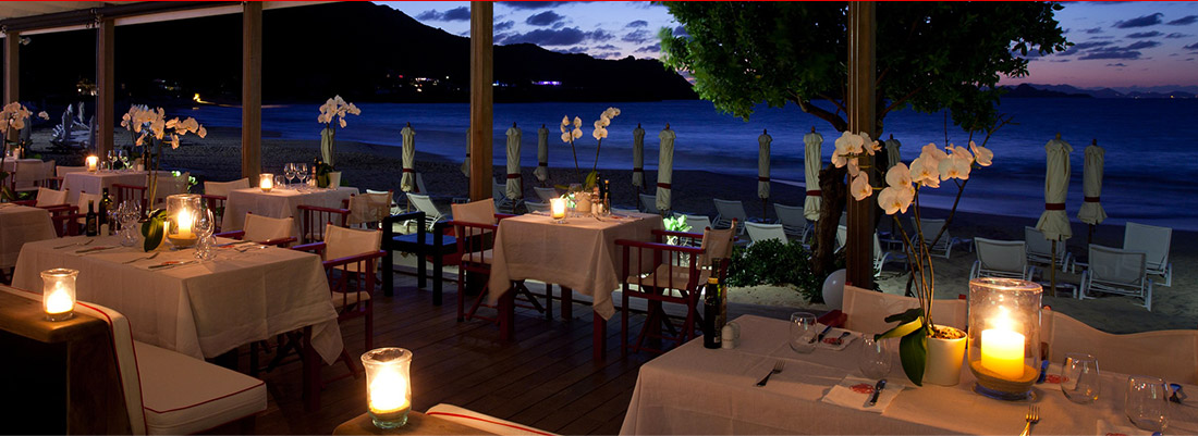 Enjoy exquisite and creative cuisine for lunch and dinner with amazing ocean and sunset views. The beachfront restaurant offers two different atmospheres, at lunch and at dinner.